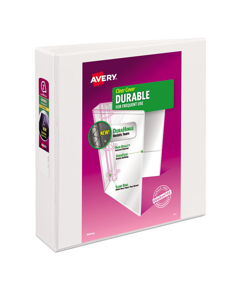 Keep lecture notes, procedures and homework assignments organized with an Avery® Durable View Binder. The durable construction is ideal for frequent referencing. The DuraHinge® design is stronger, lasts longer and resists tearing, and the DuraEdge® feature makes the sides and top more pliable, providing greater split resistance. Deeply textured film offers a smoother finish and features a linen pattern for a high-quality look and feel. Two interior pockets help you organize and secure loose papers, and the slant rings hold a higher page capacity compared to same size round rings. Use the clear overlays to label and/or decorate the covers and spine. Customize your binder more easily and more creatively with free templates and designs at Avery® Design & Print Online.