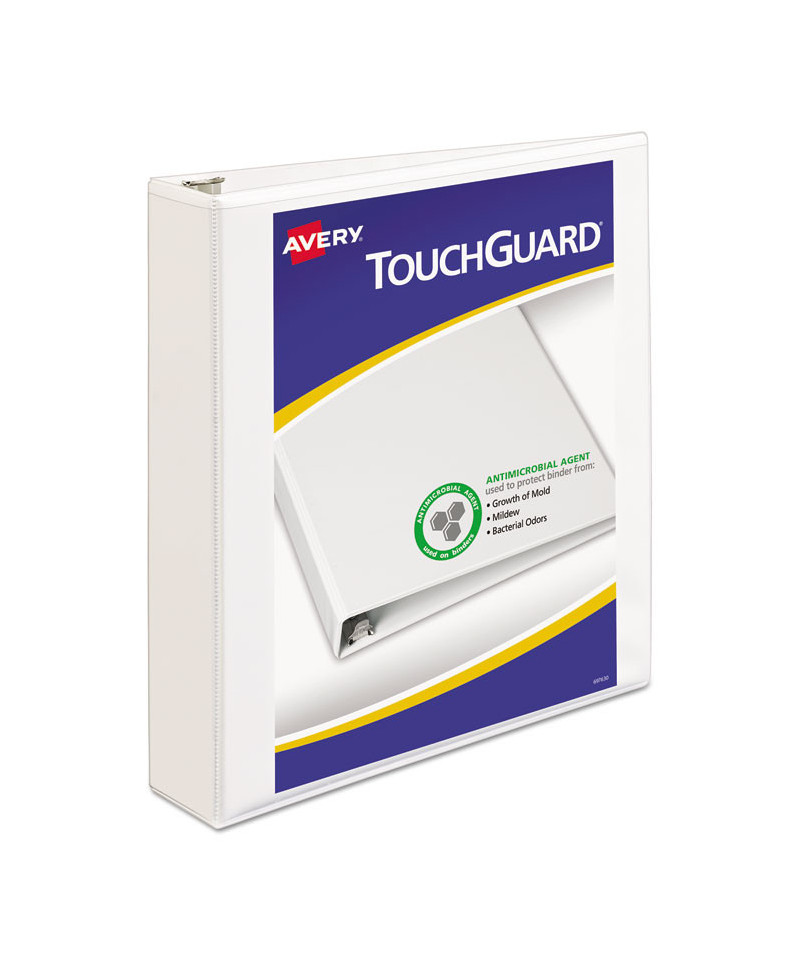TouchGuard™ binders are treated with an antimicrobial agent to protect the binder from the growth of mold, mildew and bacterial odors. Clear cover and spine allow you to easily customize your binder using free, easy-to-use designs and templates from Avery® Design & Print. Slant rings have a higher page capacity compared to same size round rings. Non-stick polypropylene material prevents toner transfer. Four clear interior pockets for increased storage. Made with 100% recycled chipboard. Holds 8.5" x 11" documents.