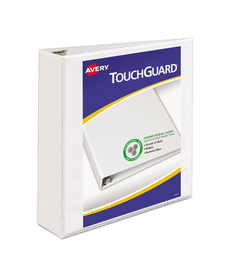 TouchGuard™ binders are treated with an antimicrobial agent to protect the binder from the growth of mold, mildew and bacterial odors. Clear cover and spine allow you to easily customize your binder using free, easy-to-use designs and templates from Avery® Design & Print. Slant rings have a higher page capacity compared to same size round rings. Non-stick polypropylene material prevents toner transfer. Four clear interior pockets for increased storage. Made with 100% recycled chipboard. Holds 8.5" x 11" documents.