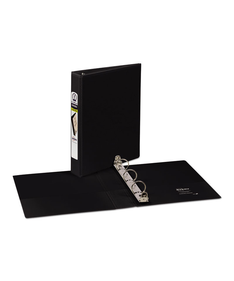 Great for your smaller 8 1/2 x 5 1/2 pages. Durable construction is ideal for frequent referencing. Organize and secure paper with two interior pockets. Easy to customize your binder with free templates and designs at Avery® Design & Print Online. Pages lie flat with back-mounted round rings.