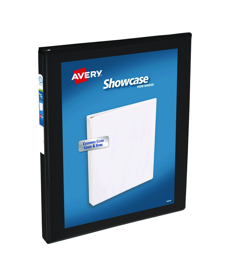 Keep your binder organization simple yet secure in a slim and convenient package with Avery Showcase View Binders with slant rings. The sturdy, lightweight construction ensures that the binder is up for light, general use and is perfect for school supplies, office supplies and more. Show off your class notes, employee handbooks and other important papers in a lower cost economy binder that provides a high-quality look and feel. Covered in a deep texture film that offers a smooth finish and linen-like pattern, these binders with clear covers work well at hiding surface damage from normal, everyday use. Each binder holds 8.5" x 11" paper, sheet protectors and dividers. The back-mounted slant rings keep your pages lying flat and easy to turn. Store loose sheets within the two interior pockets on the front and back covers of the binder. Personalize your binders and make the contents easy to identify at a glance with custom title pages for your front and back covers and matching ID label on the spine. Customizing your binder is easy when you use the designs and templates in Avery Design and Print. Great for use as a report binder, project binder, portfolio binder, presentation binder, recipe binder and more.