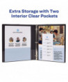 Light-use view binder. Textured clear cover hides surface damage resulting from normal use. Deep texture film offers a smoother finish and features a linen pattern for a high-quality look and feel. Pages lie flat with back mounted rings; exposed rivets on back. Two interior pockets for additional storage of loose documents. Customize cover and spine using free, easy-to-use designs and templates from Avery Design & Print.