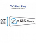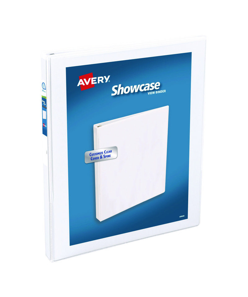 Keep your binder organization simple yet secure in a slim and convenient package with Avery Showcase View Binders with slant rings. The sturdy, lightweight construction ensures that the binder is up for light, general use and is perfect for school supplies, office supplies and more. Show off your class notes, employee handbooks and other important papers in a lower cost economy binder that provides a high-quality look and feel. Covered in a deep texture film that offers a smooth finish and linen-like pattern, these binders with clear covers work well at hiding surface damage from normal, everyday use. Each binder holds 8.5" x 11" paper, sheet protectors and dividers. The back-mounted slant rings keep your pages lying flat and easy to turn. Store loose sheets within the two interior pockets on the front and back covers of the binder. Personalize your binders and make the contents easy to identify at a glance with custom title pages for your front and back covers and matching ID label on the spine. Customizing your binder is easy when you use the designs and templates in Avery Design and Print. Great for use as a report binder, project binder, portfolio binder, presentation binder, recipe binder and more.