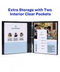 Light-use view binder. Textured clear cover hides surface damage resulting from normal use. Deep texture film offers a smoother finish and features a linen pattern for a high-quality look and feel. Pages lie flat with back mounted rings; exposed rivets on back. Two interior pockets for additional storage of loose documents. Customize cover and spine using free, easy-to-use designs and templates from Avery Design & Print.
