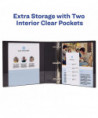 Light-use view binder. Textured clear cover hides surface damage resulting from normal use. Deep texture film offers a smoother finish and features a linen pattern for a high-quality look and feel. Pages lie flat with back mounted rings; exposed rivets on back. Two interior pockets for additional storage of loose documents. Customize cover and spine using free, easy-to-use designs and templates from Avery Design & Print.