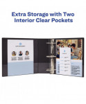 Light-use view binder. Textured clear cover hides surface damage resulting from normal use. Deep texture film offers a smoother finish and features a linen pattern for a high-quality look and feel. Pages lie flat with back mounted rings; exposed rivets on back. Two interior pockets for additional storage of loose documents. Customize cover and spine using free, easy-to-use designs and templates from Avery Design & Print.
