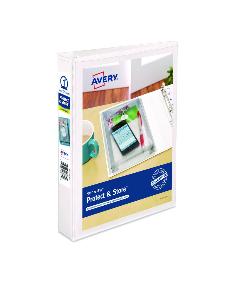 Mini Durable View Protect & Store™ Binder makes the perfect desktop or pocketbook companion. Its small size makes it easy to organize and store notes, phone numbers, addresses and other important information that you can easily take on the road for quick reference. The fully enclosed pocket provides plenty of room for documents and other important supplies. The secure clasp prevents items from falling out, while the water-resistant material keeps them protected from the elements. You can even customize your cover using free templates at Avery® Design & Print. Lighten your load, get organized and protect and store your important information with this mini binder.