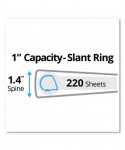 Durable binder features a sturdy construction that's ideal for frequent referencing. The DuraHinge® design is stronger, lasts longer and resists tearing, and the DuraEdge® feature makes the sides and top more pliable, providing greater split resistance. Deeply textured film offers a smoother finish and features a linen pattern for a high-quality look and feel. The binder features wider front and back panels to fully cover standard dividers and sheet protectors. Slant rings have a higher page capacity when compared to the same size round rings. Pages lie flat with back-mounted rings. Two interior pockets provide plenty of room to store both punched and unpunched paperwork.