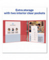 Durable construction makes it ideal for frequent reference. Tear-resistant DuraHinge® design is stronger and lasts longer. DuraEdge® feature makes the sides and top more pliable, providing greater split resistance. Deeply textured film offers a smoother finish and features a linen pattern for a high-quality look and feel. Wider front and back panels fully cover standard dividers and sheet protectors. Organize and secure papers within two interior pockets. Slant rings have a higher page capacity when compared to the same size round rings. Pages lie flat with back-mounted rings.