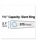Durable binder features a sturdy construction that's ideal for frequent referencing. The DuraHinge® design is stronger, lasts longer and resists tearing, and the DuraEdge® feature makes the sides and top more pliable, providing greater split resistance. Deeply textured film offers a smoother finish and features a linen pattern for a high-quality look and feel. The binder features wider front and back panels to fully cover standard dividers and sheet protectors. Slant rings have a higher page capacity when compared to the same size round rings. Pages lie flat with back-mounted rings. Two interior pockets provide plenty of room to store both punched and unpunched paperwork.