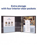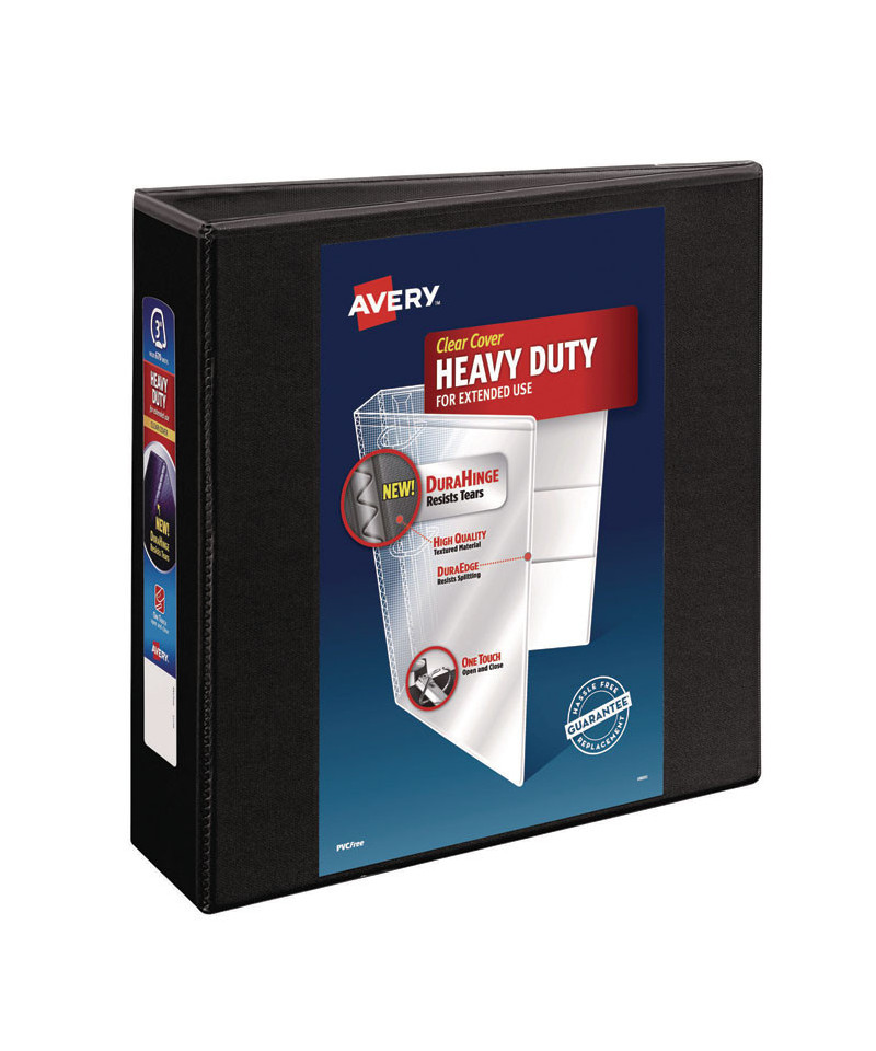 Heavy-Duty view binder with one touch EZD rings is perfect for long-term, regular use. Tear-resistant DuraHinge design is stronger and lasts longer. DuraEdge feature makes the sides and top more pliable, providing greater split resistance. Deep-textured film offers a smoother finish and features a linen pattern for a high-quality look and feel. Clear cover and spine for easy customization. Four clear, interior pockets provide extra storage space. Wider front and back panels fully cover standard dividers and sheet protectors. One touch EZD rings provide easy access and have a higher page capacity when compared to the same size round rings. Customize the cover with free, easy-to-use templates and designs at Avery Design & Print online.