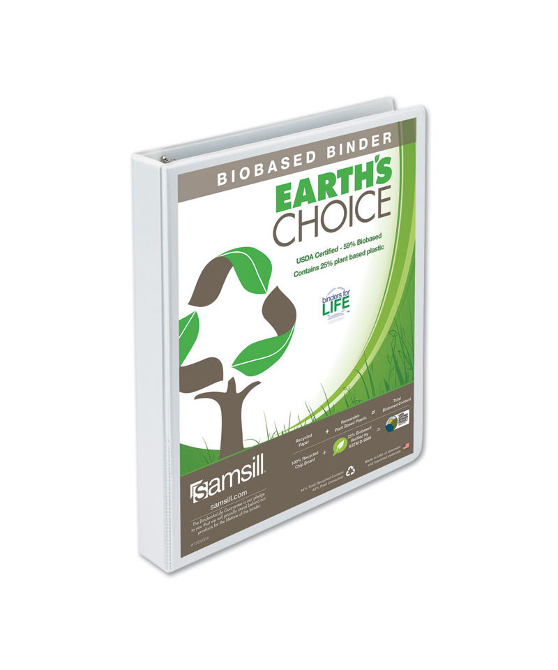 Ring binders are must have organization tool for schools, offices, and homes. The biobased presentation view binders are not only durable and well-constructed but are have both biobased and recycled properties that make them a great sustainability solution. These USDA certified binders are made with at least 59% biobased material and come with a cover made of 25% plant based renewable plastic. These ring binders also have durable chipboard made from 100% recycled material and a minimum of 98% post-consumer content. Biobased content is carefully tested using ASTM D-6866 standards. The first and only biobased presentation view binders are durable and can be used for storing documents and loose items with considerable ease for the perfect counter organizer. Round rings are mounted on the back lid which allows pages to lay flat and prevent wear and tear of the documents. Such a construction also adds to a sleek, clean appearance with no-rivet spine. The rings are sturdy to withstand years of use and easy to open and close. It features two clear inside horizontal pockets for additional storage and organization of loose documents and non-punched papers. Each pocket provides enough space to hold notes, photos, business cards, or full-size pages that will be punched later. Non-stick materials are used for making this product, which prevents transfer of ink or lifting copy when materials are inserted in the cover or placed inside. A clear overlay on the front, back, and spine of the binder gives full control and flexibility over customization of presentations, organizational projects, office reports, class projects, and more. Order multiple binders to create a custom desk reference system for weekly or monthly office reports, multiple classes at school, or other unique personal or professional projects.