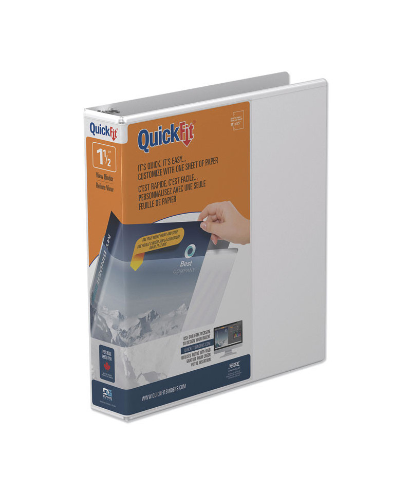 Attractive, durable view binder is ideal for important presentations. Easily customize the front and spine inserts with a single sheet of paper. Back-mounted rings allow pages to lie flat. Ink transfer resistant overlay. Convenient inside pockets provide space for regularly referenced materials. Free, customizable insert templates available at the QuickFit® website. PVC-free.