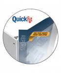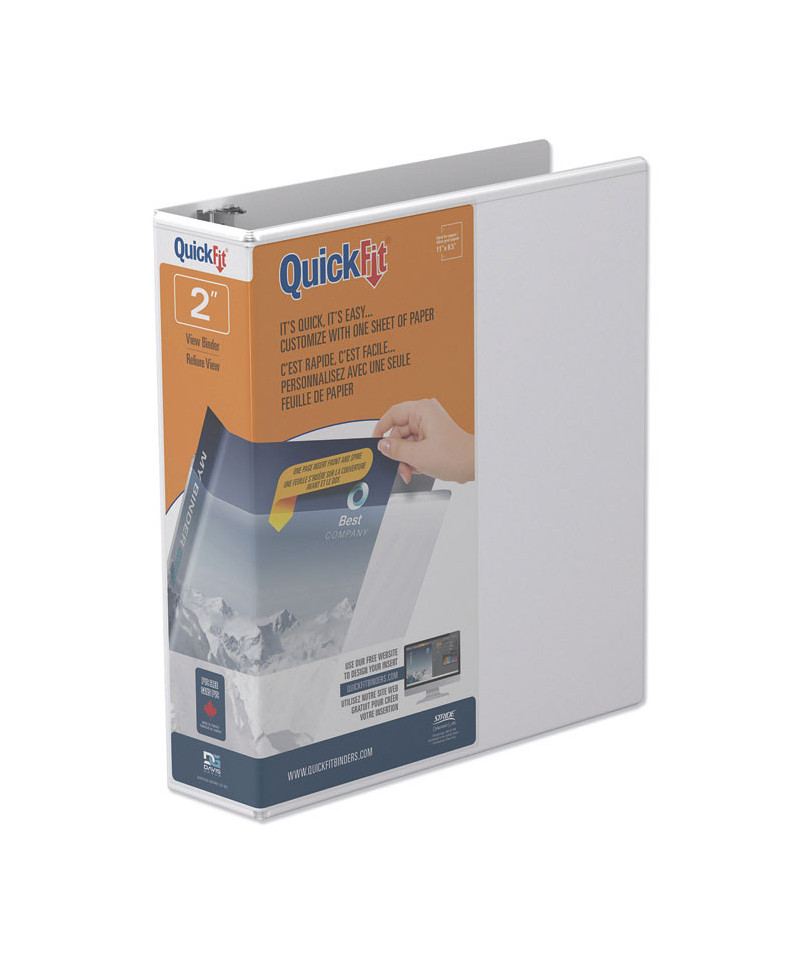 Attractive, durable view binder is ideal for important presentations. Easily customize the front and spine inserts with a single sheet of paper. Back-mounted rings allow pages to lie flat. Ink transfer resistant overlay. Convenient inside pockets provide space for regularly referenced materials. Free, customizable insert templates available at the QuickFit® website. PVC-free.