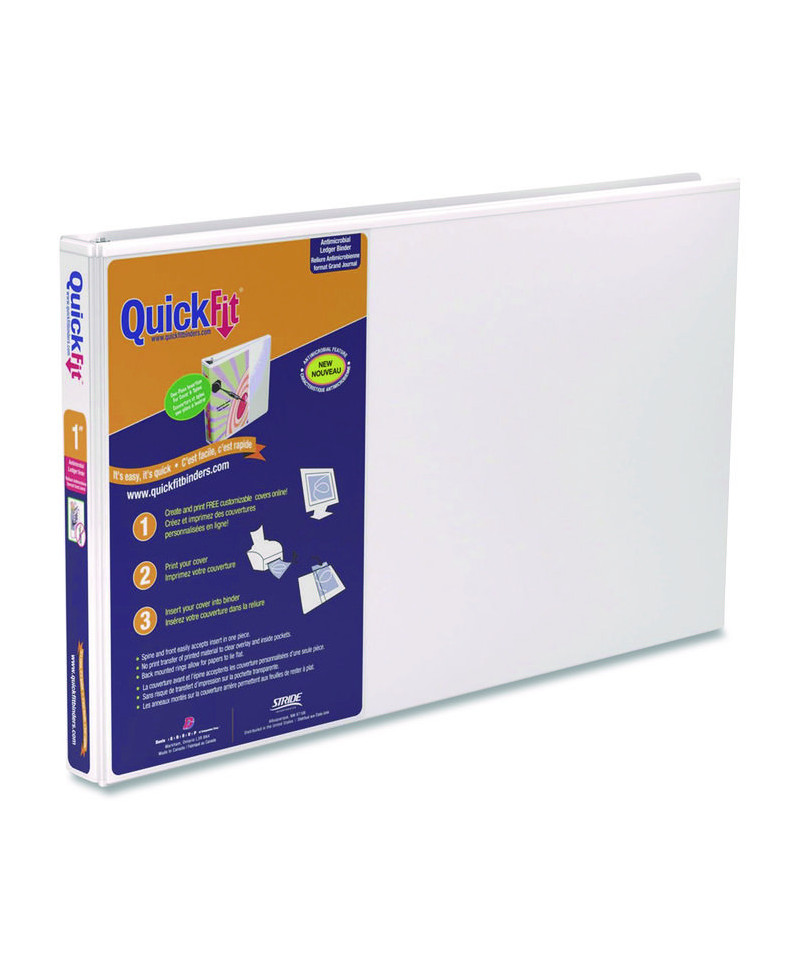 It's easy, it's quick. Spine and front cover inserts can easily be added with a single piece of paper. No print transfer of printed material to clear overlay and inside pockets. Back-mounted rings lock and allow pages to lay flat. Free, customizable insert templates available at the QuickFit® website. No ink transfer on overlay or inside pocket. Antimicrobial product protection to resist the growth of bacteria on the binder surface. PVC-free.