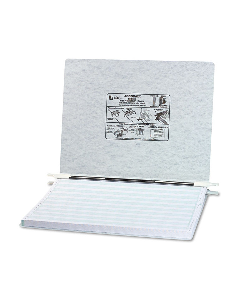 Ideal for organizing and storing lots of information, PRESSTEX® data covers bind up to 6" of burst or unburst sheets. Retractable storage hooks allow for use as a hanging binder and the embossed, PRESSTEX® covers are acrylic-coated to resist moisture. Flexible top and bottom loading option makes it super easy to use. Cover contains recycled materials.