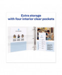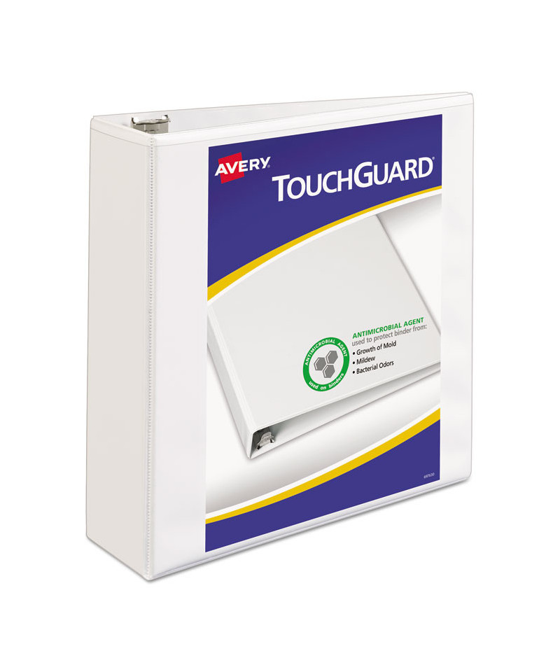 TouchGuard™ binders are treated with an antimicrobial agent to protect the binder from the growth of mold, mildew and bacterial odors. Clear cover and spine allow you to easily customize your binder using free, easy-to-use designs and templates from Avery® Design & Print. Slant rings have a higher page capacity compared to same size round rings. Non-stick polypropylene material prevents toner transfer. Four clear interior pockets for increased storage. Made with 100% recycled chipboard. Holds 8.5" x 11" documents.