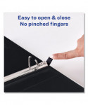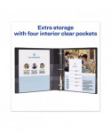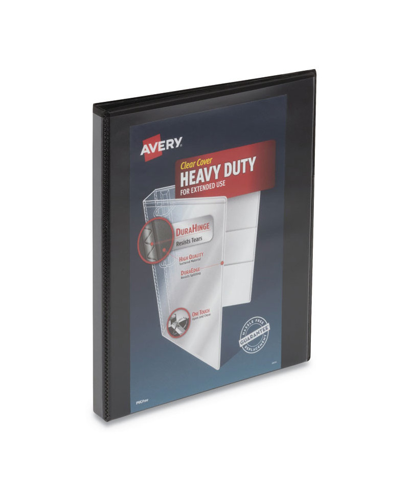 This heavy-duty view binder with slant rings is perfect for extended use. From everyday referencing to classroom notes and home business use-this binder's strong enough to handle them all. The DuraHinge® design is stronger, lasts longer and resists tearing, while the DuraEdge® feature makes the sides and top more pliable to resist splitting. Our deep texture film offers a smoother finish and features a linen pattern for high quality look and feel. Push the lever to open the rings for adding, replacing and removing pages. Even when filled to its 120-page capacity, this binder still has four stacked pockets for a bit of extra space inside. Clear cover and spine for easy customization.