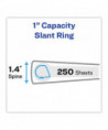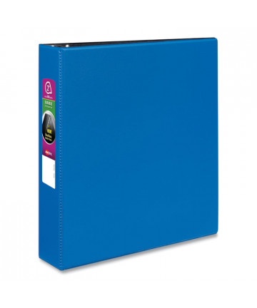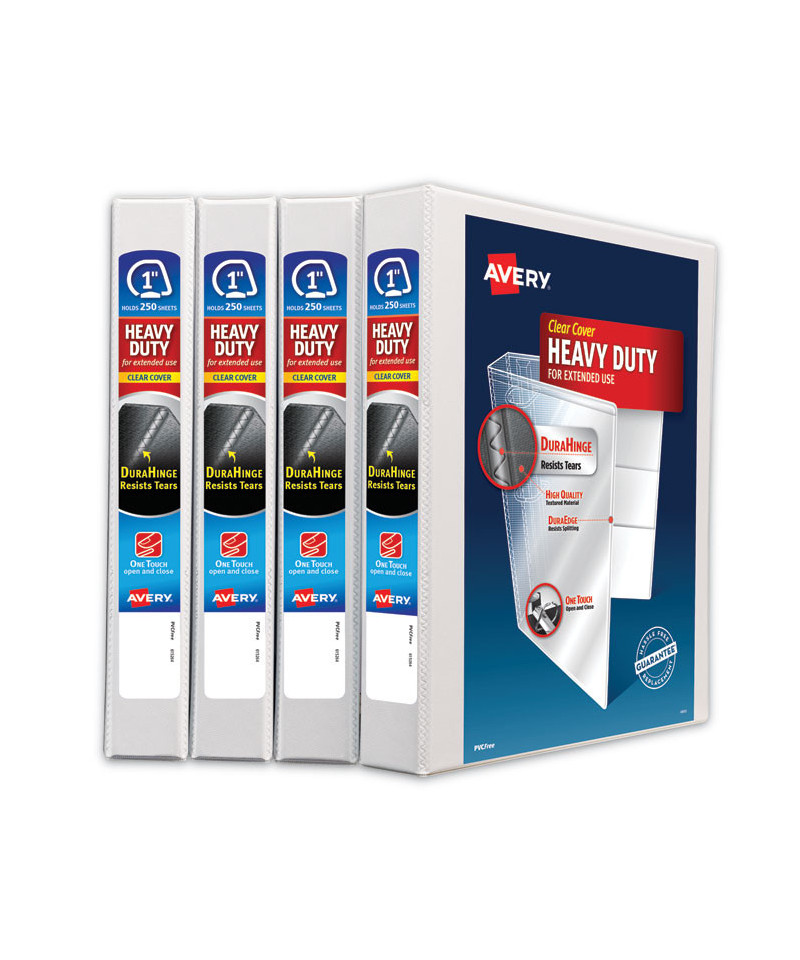 With this Heavy-Duty Nonstick View Binder you get one-touch operation and the durability required for everyday use. Nonstick material won't lift ink or toner off printed pages. Tear-resistant DuraHinge® design is stronger and lasts longer. DuraEdge® feature makes the sides and top more pliable, providing greater split resistance. Deeply textured film offers a smoother finish and features a linen pattern for a high-quality look and feel. Four clear, interior pockets provide extra storage space. Wider front and back panels fully cover standard dividers and sheet protectors. Slant rings have a higher page capacity when compared to the same size round rings. Pages lie flat with back-mounted rings (exposed rivets on back). Customize your title page using free templates and designs at Avery® Design & Print Online.
