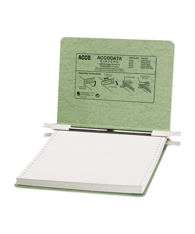 Ideal for organizing and storing lots of information, PRESSTEX® data covers bind up to 6" of burst or unburst sheets. Retractable storage hooks allow for use as a hanging binder and the embossed, PRESSTEX® covers are acrylic-coated to resist moisture. Flexible top and bottom loading option makes it super easy to use. Cover contains recycled materials.