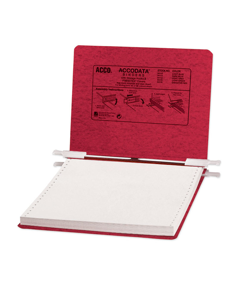 Ideal for organizing and storing lots of information, PRESSTEX® data covers bind up to 6" of burst or unburst sheets. Retractable storage hooks allow for use as a hanging binder and the embossed, PRESSTEX® covers are acrylic-coated to resist moisture. Flexible top and bottom loading option makes it super easy to use. Cover contains recycled materials.