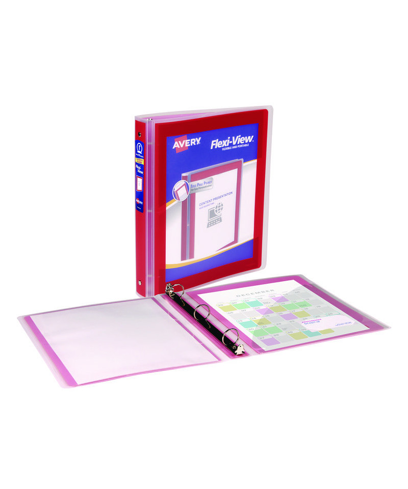 Prepare your reports so they're ready to swing into action, dressed to impress. The Flexi-View Binder presents reports in flexible, durable plastic that keeps your pages looking neat and presentable. A colorful preprinted border on the front cover frames a translucent window designed to show off your customized title page, and customizing is easy when you use free designs and templates from Avery® Design & Print. Durable, lightweight and easy to carry. Non-stick poly material prevents ink and toner transfer. This binder will ensure that your presentation stays securely bound and ready to wow.