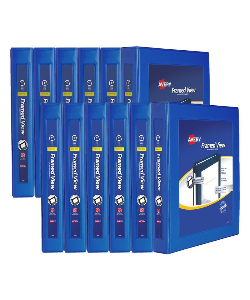 Border on front panel frames and centers title page for a professional look. Easily customize cover and spine using free designs and templates from Avery® Design & Print. Easily insert title page and spine ID with convenient mounting sheets. Two clear interior pockets and a business card pocket add to the professional image. Wider front and back panels fully cover standard dividers and sheet protectors. Pages lie flat with back-mounted rings (exposed rivets on back).