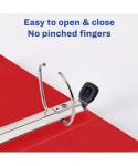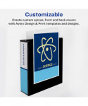 Heavy-duty view binders with DuraHinge design are stronger, last longer and resist tearing. The DuraEdge feature makes sides and top more pliable to resist splitting. Deep textured film with linen pattern for a high-quality look and feel. One touch EZD rings open with ease and have a higher page capacity than round rings. Wider front and back panels fully cover standard dividers and sheet protectors. Four clear pockets provide extra storage. Customize the cover using free templates and designs at Avery Design & Print.