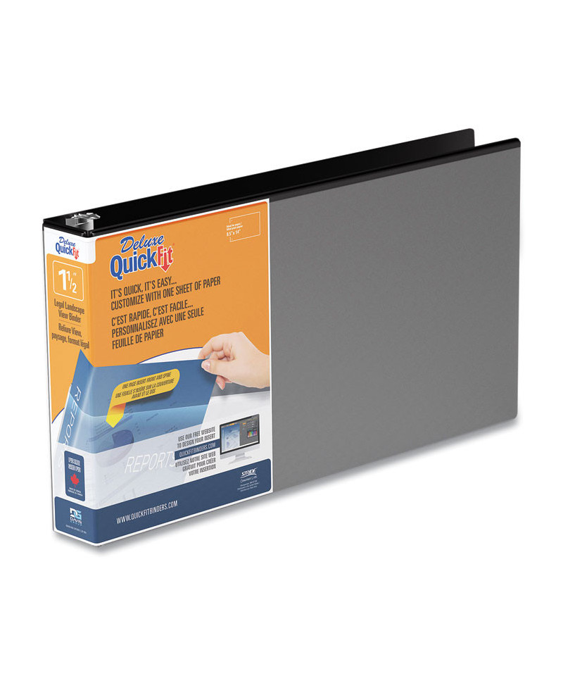 Spreadsheet view binder features the unique QuickFit® overlay design that allows you to use a single sheet of paper to create a custom one-piece presentation insert that wraps around the spine to the front cover for easy insertion and quick identification. Constructed from commercial grade polypropylene material for frequent reference and longevity. Landscape format is great for spreadsheets, drawings, and portfolios. Clear overlay is ink and toner resistant. Back-mounted rings allow pages to lie flat. PVC free.