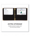 Get ready for a big business meeting or simply stand up to the task of daily work. Coming from the exclusive Classic Collection® of executive binders, this corporate binder combines the highest grade of workmanship with premium-quality materials. Featuring an upscale traditional styling, it includes eye-catching accents, a curved spine and concealed-rivet construction for a smart and truly professional appeal. The luxurious texture of the leather-like exterior is complemented with sewed edges for an extra touch of elegance, while the metallic brass plating of the metal rings matches the corner edges for a stylish, professional appeal. Two inside pockets allow you to store and organize your important documents, unpunched sheets and other office supplies. Heavy-duty O-rings allow you to securely store and organize documents, pamphlets, samples or giveaways, while making it easy to turn the pages. Designed to meet a variety of needs, it can be used as an interview binder, resume binder, presentation binder, planner binder or legal binder, and it's a popular choice among investment advisers, advocates, real estate professionals and anyone working with high-value clients.