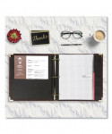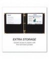 Rich-looking leather-like material is designed to meet your professional needs. It includes a curved spine, concealed rivet construction, and two interior pockets for storing and organizing your important documents, notes, photos, business cards, full-size pages, unpunched paper, and other office supplies.
