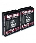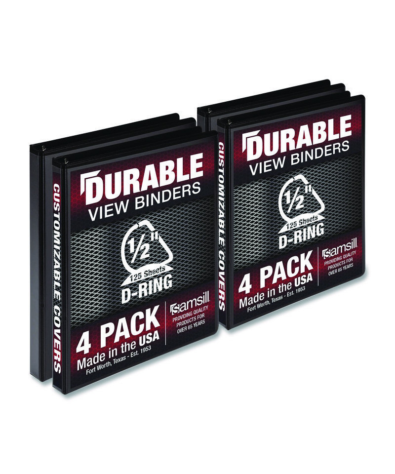 Durable D-Ring View Binders, 3 Rings, 0.5" Capacity, 11.5" x 8.5", Black, 4/Pack