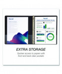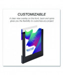 These three-ring binders make indispensable home, office, and school supplies offering the economical paper storage and organizational value you've been searching for. This important document binder features a clear overlay along the front, back, and spine, allowing you to customize your presentations, projects, and more. Non-stick materials are used to make this product, which prevents ink transfer or lifting copy when materials are inserted into the cover or placed inside. Three binder rings with double boosters hold 8.5 x 11 letter-sized sheets with ease. The rings are mounted on the back lid, allowing pages to lay flat while preventing wear and tear on documents. Two clear interior pockets provide additional storage with enough space for notes, photos, business cards, or full-size pag