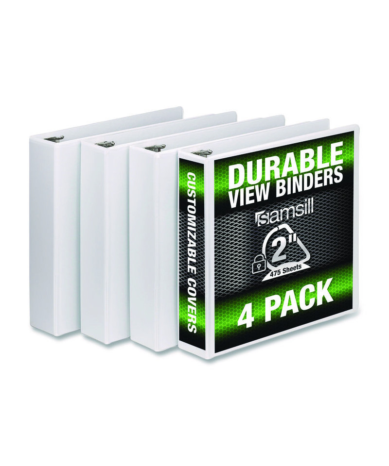 Durable D-Ring View Binders, 3 Rings, 2" Capacity, 11.5" x 8.5", White, 4/Pack