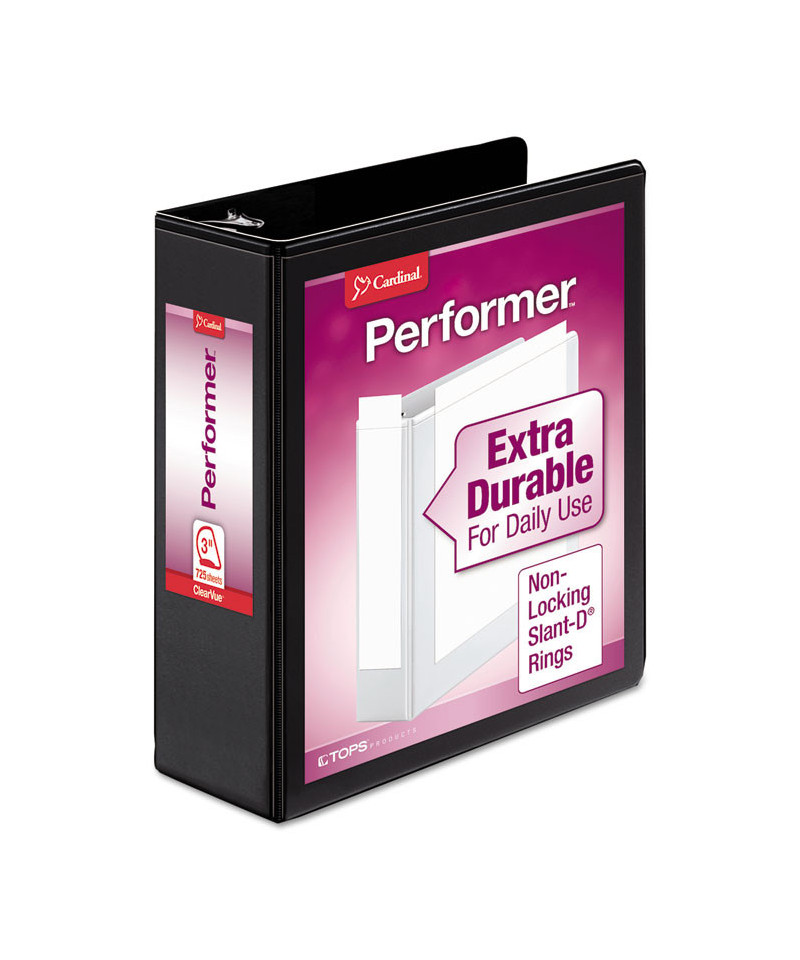 Slant-D® ring holds 25% more sheets than standard round ring. Everyday durability for active projects. XtraLife® cover hinge for added strength. PVC-free, non-stick, ClearVue™ covers for three-sided customization: insert custom title sheets on the front, back and spine for a professional looking presentation.