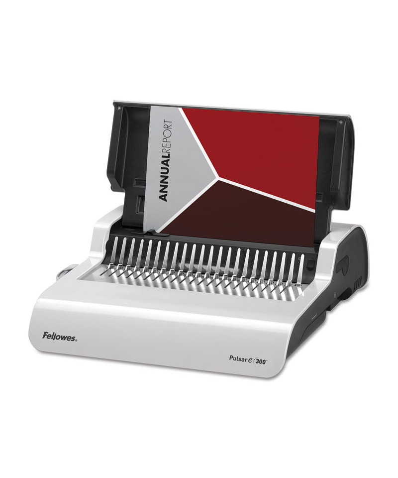 Designed for moderate use in small to mid-sized offices. Allows user to punch and bind continuously for maximum productivity. Binds up to 300 sheets with a 1 1/2" comb. Vertical document loading ensures accurate punch alignment. Features built-in comb storage tray with document measurement device for added convenience and quick set-up. Enhanced accuracy edge guide for pinpoint punch alignment. Includes binding starter pack.