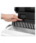 Designed for moderate use, ideal for small to mid-sized offices. Allows the user to punch and bind in a continuous manner. Vertical loading for accurate punching. Enhanced accuracy edge guide for pinpoint punch alignment. Includes comb storage tray with document measurement device and binding starter pack.