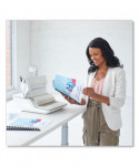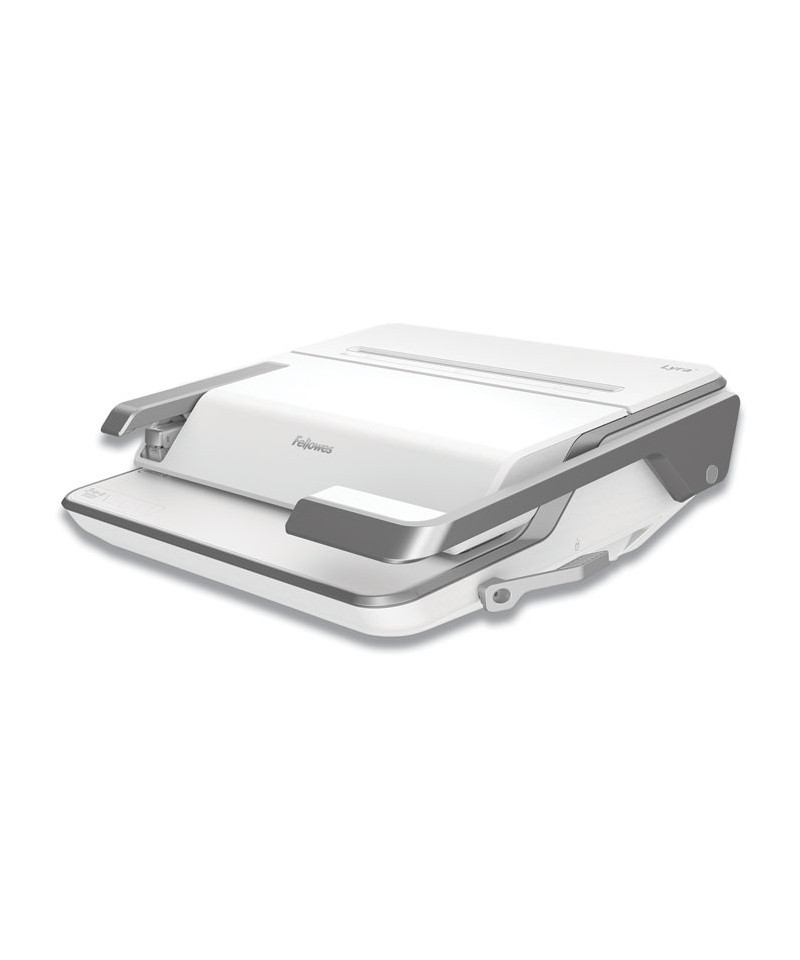 The unique Lyra™ 3-in-1 Binding Center combines stapling, 3-hole punching and comb binding in one machine. EasyPress™ double action staplers offers effortless stapling for up to 30 pages. Vertical loading enhances accuracy for faster punching and binding. Precision alignment of punching and stapling delivers perfect results. Includes a document and comb measurement guide for ease of use. The Lyra is built for the office, classroom, library and more.