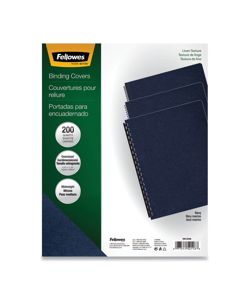 Fellowes® Expressions Linen Binding Covers give a professional look and feel to any document. Premium 65-lb covers with linen-textured finish add a professional look and feel to any document. Un-punched covers easily adapt to any binding system. Not for use with thermal-binding systems. Use at home, or in the home office, school, churches or anywhere else you can think, to organize all of your important documents. Recyclable.