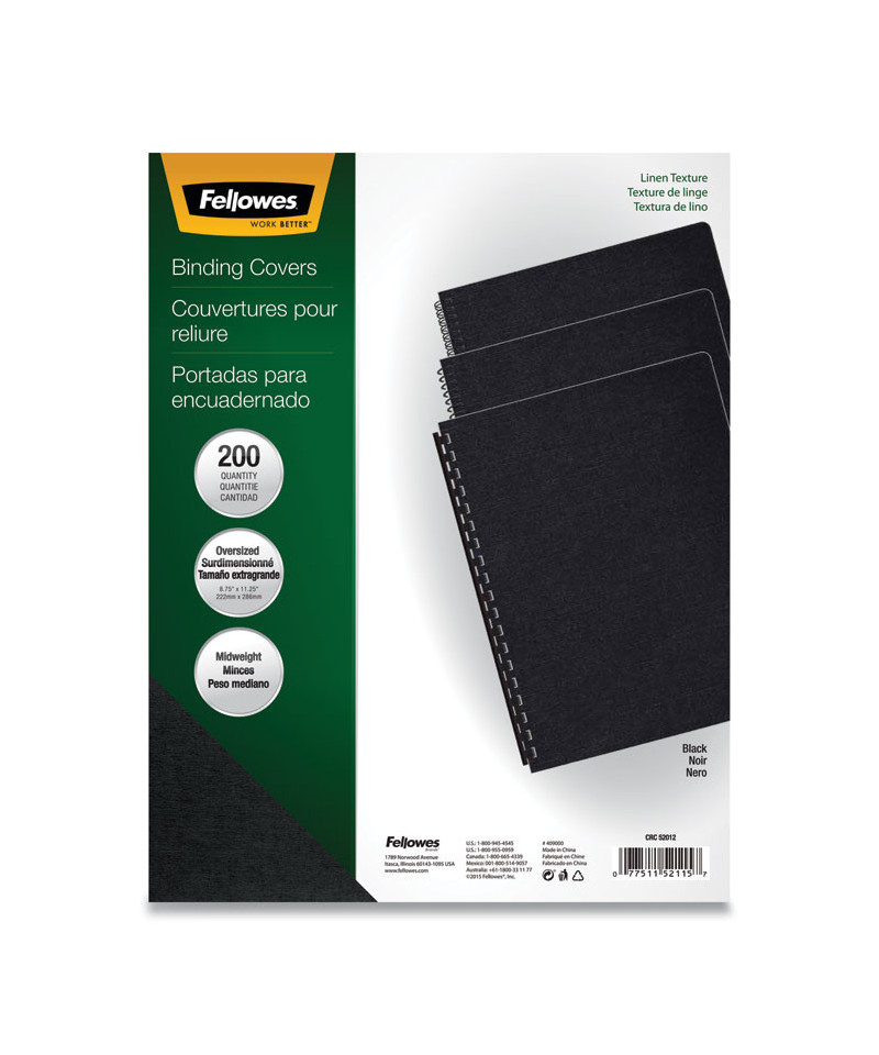 Fellowes® Expressions Linen Binding Covers give a professional look and feel to any document. Premium 65-lb covers with linen-textured finish add a professional look and feel to any document. Un-punched covers easily adapt to any binding system. Not for use with thermal-binding systems. Use at home, or in the home office, school, churches or anywhere else you can think, to organize all of your important documents. Recyclable.