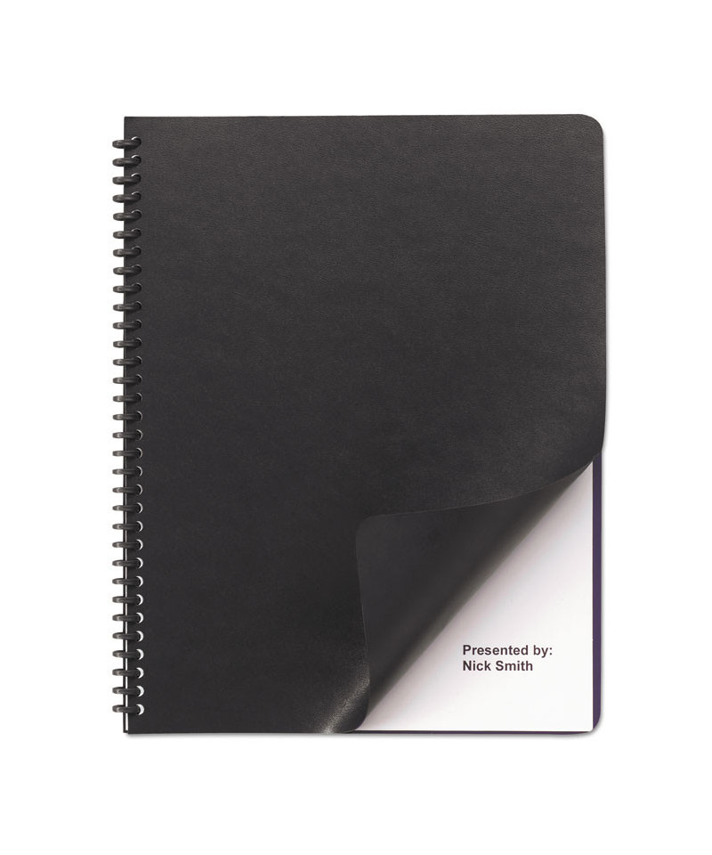 Leather-Look Presentation Covers for Binding Systems, Paper, Round Corners, 11.25 x 8.75, Black, 50 Sets/Pack