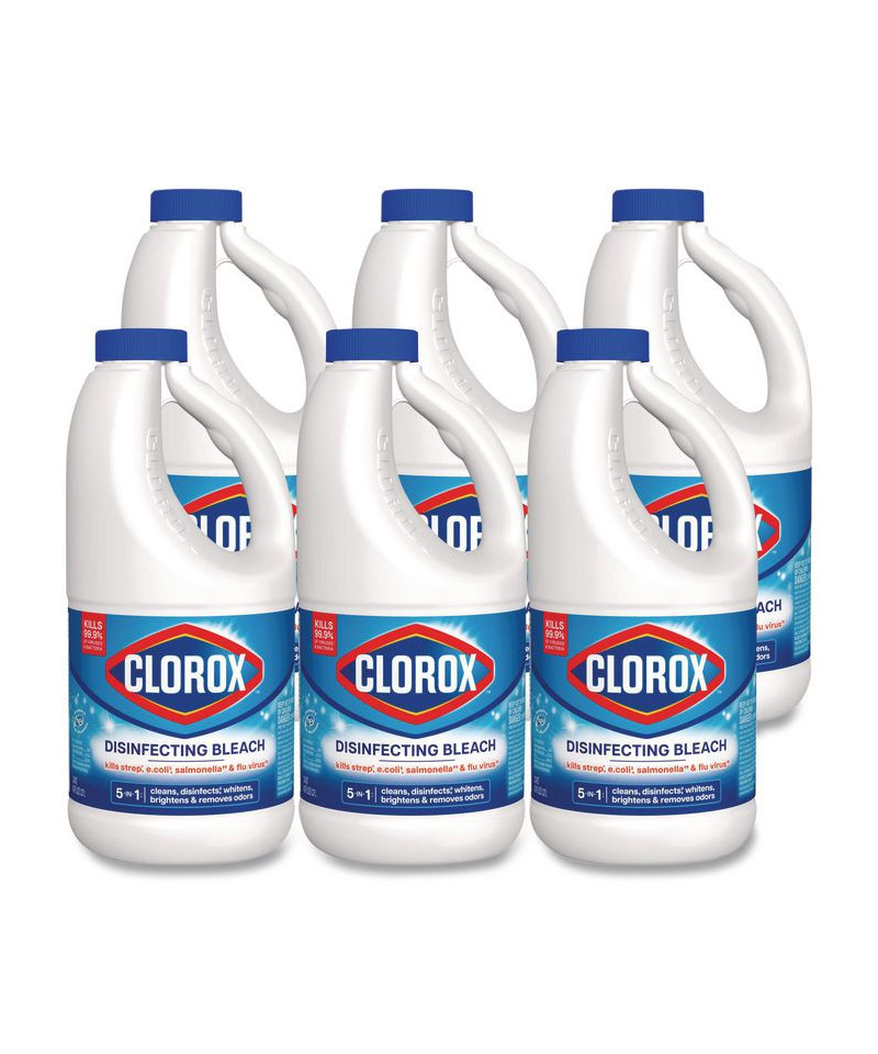 Get a far reaching clean with America's #1 bleach. Clorox® Disinfecting Bleach with CloroMax kills 99.9% of household germs and bacteria including norovirus, flu virus, MRSA, E. coli and Salmonella left on household surfaces such as countertops, floors, toilets and more, when used as directed. This versatile product gives you 5 benefits in 1: it cleans, disinfects hard nonporous surfaces, whitens, brightens and removes odors, giving you the confidence of a lasting clean. Formulated with CloroMax Technology, this concentrated bleach protects surfaces in your business as it cleans, so stains won't stick and cleanup is easier. It also whitens whites and keeps clothes whiter longer, while removing stains even in cold water.