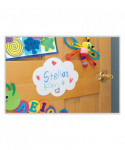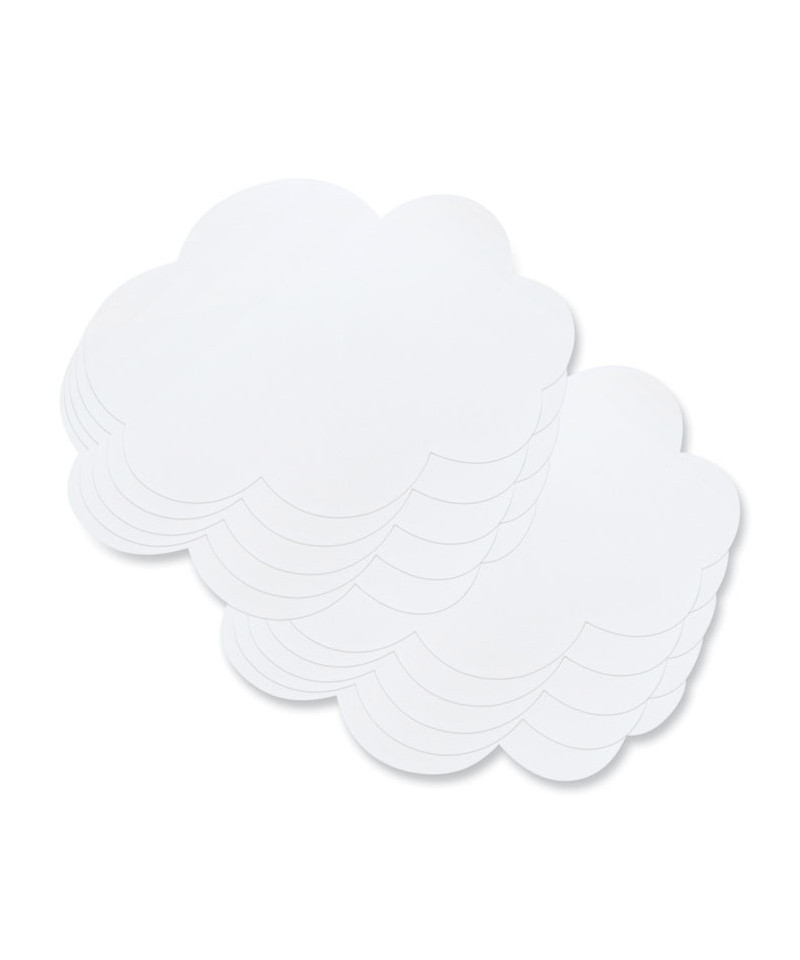 Pacon® Dry Erase Clouds are perfect for single or group classroom use for math, writing, word practice, games and more! These shapes have an extremely high quality dry erase surface, a thick durable foam inner layer for tear-resistance, and a unique tacky backing that make them repositionable and reusable hundreds of times. These removable shapes stick to almost any clean, dry surface, including whiteboards, desks, doors, windows, cabinets, mirrors, lightly textured walls, floors, plexiglass, appliances and much more! When they get dirty, just wash them off with water, and they will stick just like new! Also great to use around the home and office. Don't forget to remove the thin, protective layer off of each shape before use!