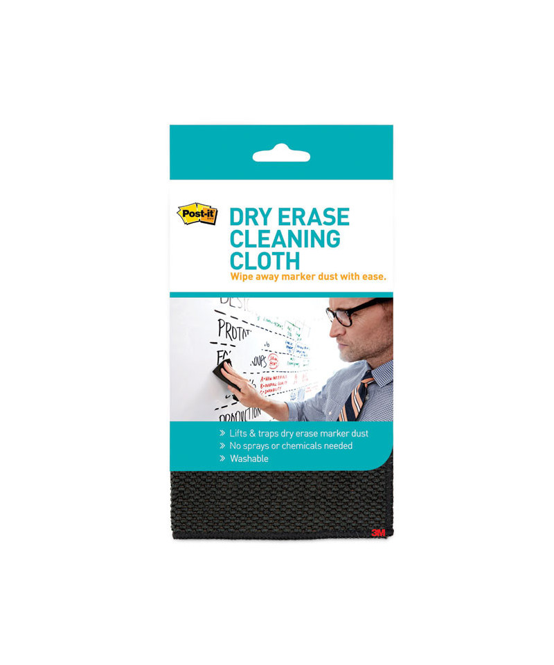 Wipe away marker dust with ease using the Post-it® Dry Erase Cleaning Cloth. The cloth lifts and traps marker dust, is washable, and no sprays or chemicals are needed.