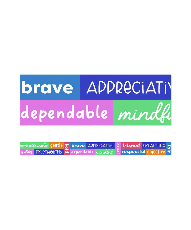 Straight Borders, 12-Piece Set, Motivational: Positive Words, 3" x 3 ft, Multicolor