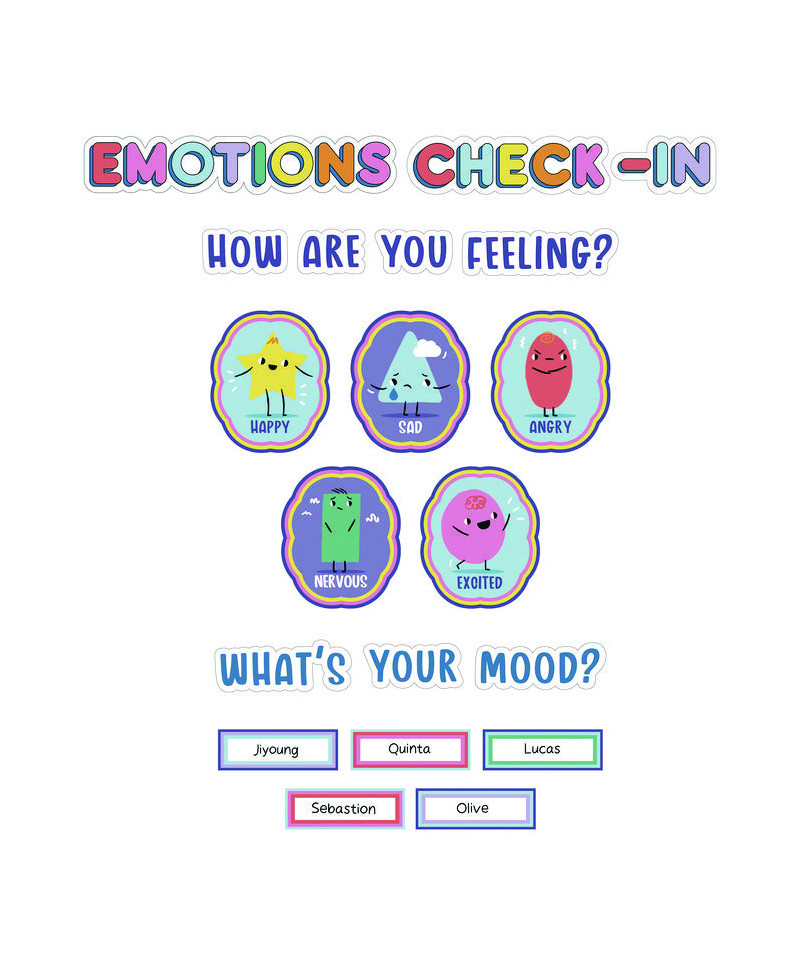 Curriculum Bulletin Board Sets, 46-Piece Set , We Stick Together: Emotions Check-In, 7.9" x 15", Multicolor