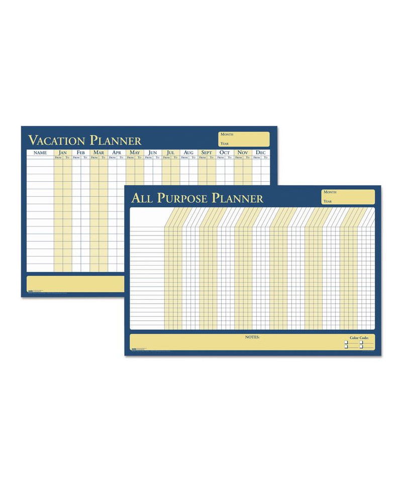 Use this planner year after year. Heavy-laminated write-on/wipe-off surface wipes clean with a damp cloth, making it easy to change information. Reversible, two-sided format features an all-purpose side with 48 columns and 24 rows, and a vacation-planner side with space for up to 15 employees. The bottom of each side also features open note space for added convenience. Made entirely of recycled materials.
