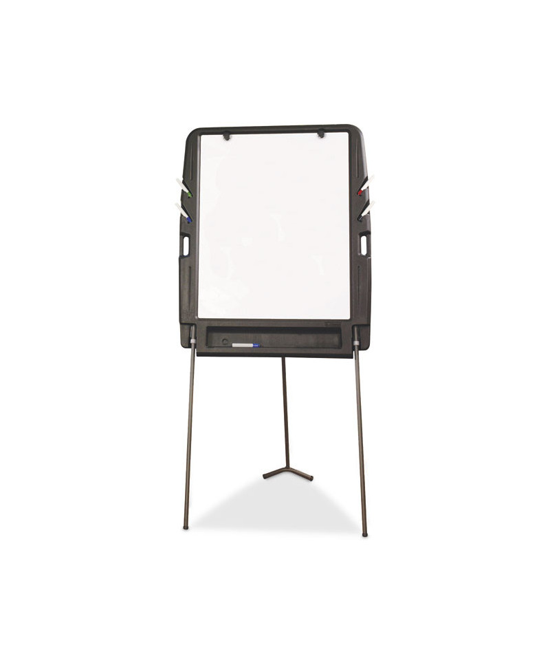 Ultra-sturdy, ultra-smart design for easy setup and transport. Constructed of blow-molded, high-density, dent- and scratch-resistant polyethylene. Designed with a variety of features for better portability and storage: molded-in grab handles and heavy gauge, powder coated steel legs that fold and lock in back cavity. Pads securely mount to board with thumb screws. Convenient marker holders and accessory compartment. Maximum easel height: 73".