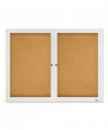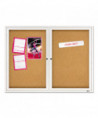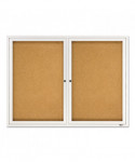 Enclosed Indoor Cork Bulletin Board with Two Hinged Doors, 48" x 36", Tan Surface, Satin Aluminum Frame