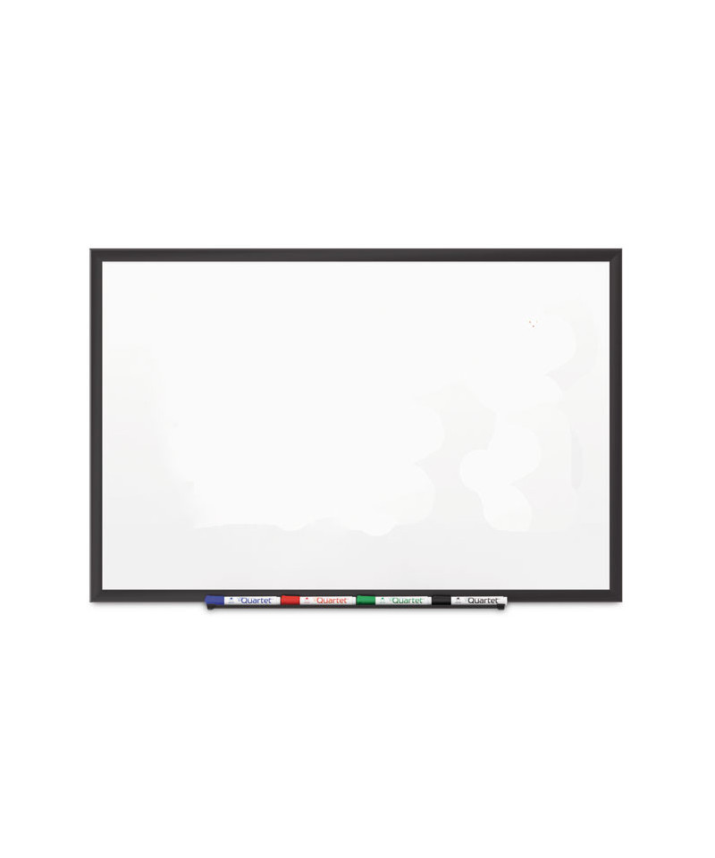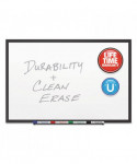 Durable, ultra-smooth board with DuraMax porcelain surface will not scratch, dent, stain or ghost. Delivers superior performance when collaboration is needed in high-profile, heavy-use office environments. Magnetic surface doubles as bulletin board. Easy-to-clean writing surface requires minimal use of Quartet cleaning solutions. Unique mounting system, quickly and easily secures board to wall. Stylish frame complements high-profile interiors. Includes four Quartet dry-erase markers.